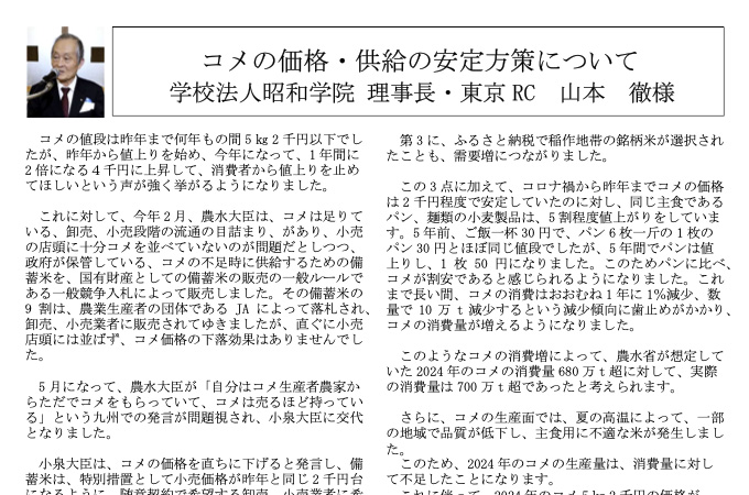 学校法人昭和学院 理事長・東京RC 山本 徹様