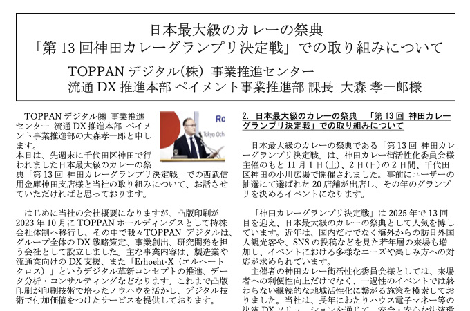 日本最大級のカレーの祭典「第 13 回神田カレーグランプリ決定戦」での取り組みについて