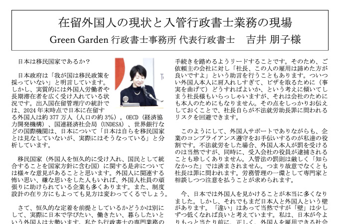 Green Garden 行政書士事務所 代表行政書士 吉井 朋子様